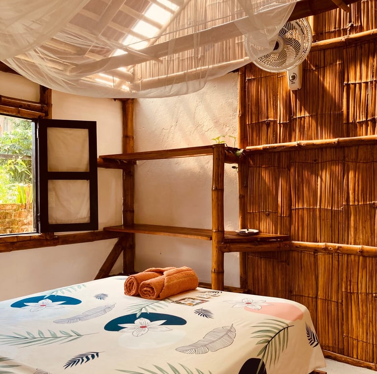 Nuestro hermoso jardín está lleno de flores coloridas y plantas nativas, lo que atrae a muchas aves tropicales. Si te mantienes quieto, podrás ver colibríes revoloteando entre las flores, disfrutando del néctar. Justo al lado de las habitaciones, bajo un encantador techo de bambú, encontrarás hamacas: el lugar perfecto para relajarte, leer un libro o simplemente balancearte mientras disfrutas de los sonidos de la naturaleza.